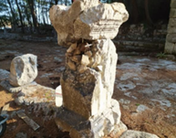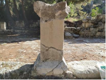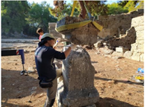 profillendirilmiş olan söz konusu yazıtlı heykel kaidesi, üstten 2. ve 5. satırlar arasında, ortadan sola doğru aşağı inecek şekilde kırılmış durumda bulunmuştur.AC-8 envanter nolu 11 numaralı yazıt paslanmaz donatı ve epoksi ile birleştirilmiştir. |