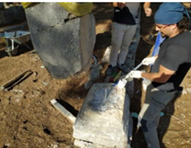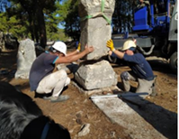 Üç yerinden kırık olan yazıt için sağlamlaştırma çalışması yapılmıştır. Gövde parçalarına paslanmaz krom nikel donatı kullanılarak birleştirme gerçekleştirilmiştir. | |||||||||||