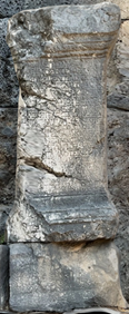 Söz konusu yazıt ilk olarak 1811 yılında Beaufort tarafından kaydedilmiştir. Daha sonra Kalinka da 1944 yılında yayınladığı corpus çalışmasında bu yazıta yer vermiştir. Yazıt bu ilk yayınlarda tek parçadır. Fakat günümüzde ilk üç satırı taşıyan üst parçadan itibaren kırılmıştır. Yazıtı 5-26. Satırlarını taşıyan alt kısmı ana cadde üzerinde dururken, üst kısım, Tetragonal Agora ile Büyük Hamam arasındaki ara yolun başlangıcında yer almaktadır ve oldukça tahrip olmuş durumdadır. Alt kısımda da özellikle sağ ve sol olmak üzere yer yer yazıtın ilk 1-6 ile son 1-12. harflerine kadar kayıplar olduğu tespit edilmektedir. (Tüner Önen, 2008, 332-333, nr. 25) | ||||||||||||||||||||||||||||||||||