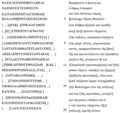 15 - Phaselis’ilerin Boule ve Demos’u Kolalemis’i Onurlandırması | ||||||||||||||||||||||||||||||||||