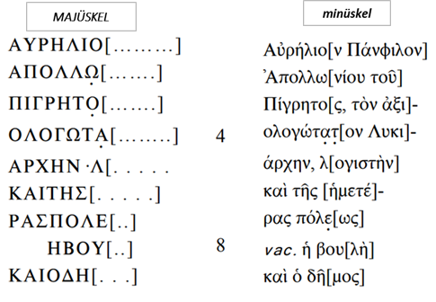 şöyledir: Αὐρ(ήλιον) Πάν[φι]λον