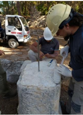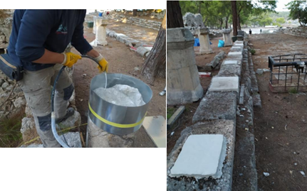Yazıt kaidesine oturacağı zemini tesviye amacıyla blokaj harcı uygulanarak sabitlenmiştir. | ||||||||||||